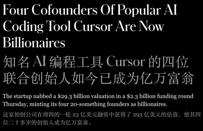 今天,全球爆火编程AI初创Cursor完成了23亿美金融资,估值直冲300亿美金。